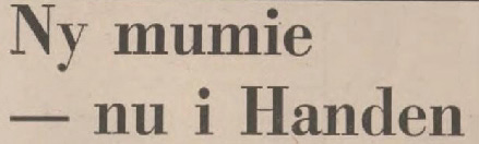Ja, förutom några veckor senare då. Låt mig presentera mumien i Handen! Den 13 april rapporterade både Aftonbladet och Expressen att en mumie härjade i Handen, och ska ha då stått gömd i mörkret, skrämt barn och rutit som en varg. Nu har detaljerna kring mumiens utseende börjat muterad rejält, och han ska ha spikfingrar, rakbladsnaglar och två centimeter tunna ben! Dessutom har han ibland setts cykla. Polisen tog det hela allvarligt och skickade ut patruller efter varje anmälan, men det listiga monstret såg alltid till att ha dragit vidare på nya äventyr när poliserna anlänt.
